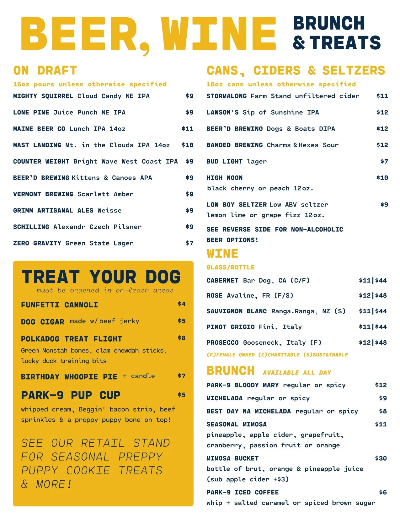 park-9 dog bar flagship MENUS